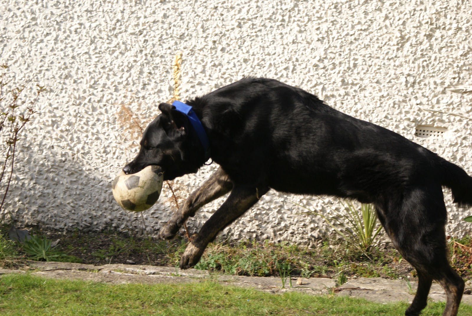 My first problem with this experiment is that some of the garden was shaded and so I had to stay away from the shaded area and into the sun so that I could use a faster shutter speed and the image would be clearer. Another problem was that I was on a hill and so the ball would bounce downwards, this meant that Billy would run away from me and so I wouldn't get a good photo. I overcame this by standing at the bottom of the hill and took photos from there.